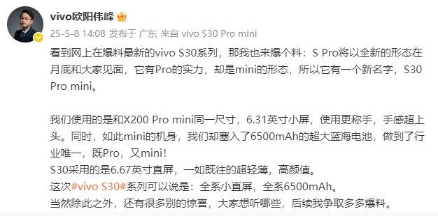 — vivo S30 Pro mini侧面照曝光:金属中框+超薄机身,超轻薄颜值超高! —