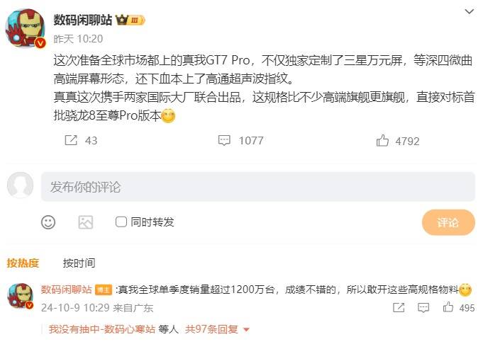 真我GT7 Pro爆料:首发三星微曲屏,超声波指纹....推荐人:丁丁小编 发布时间:2024-10-11 18:10:01