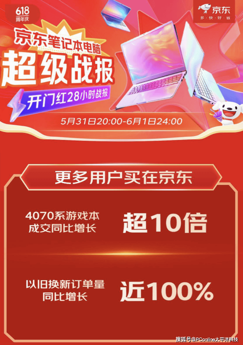 京东618开门红28小时战报出炉 4070系游戏本....推荐人:丁丁小编 发布时间:2024-06-03 12:30:00