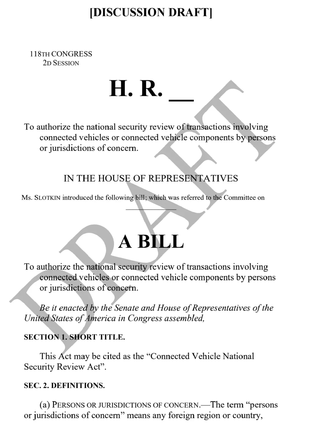 贼心不死 美国众议院再提新法案对中国联网电动车实施....推荐人:丁丁小编 发布时间:2024-05-31 10:15:01