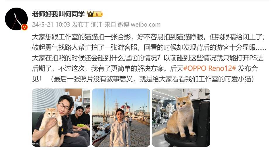 何同学晒照暗示!OPPO Reno12系列全新AI....推荐人:丁丁小编 发布时间:2024-05-21 16:09:59