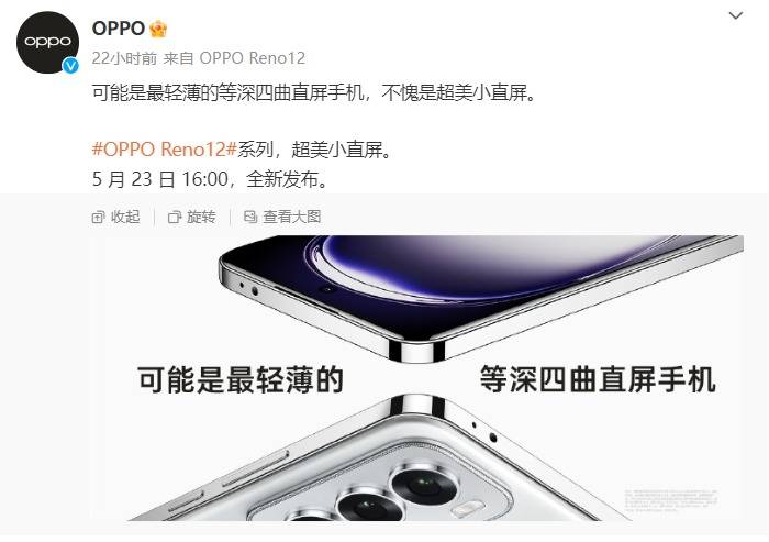 全系标配等深微曲直屏!OPPO Reno12系列定....推荐人:丁丁小编 发布时间:2024-05-18 09:04:56