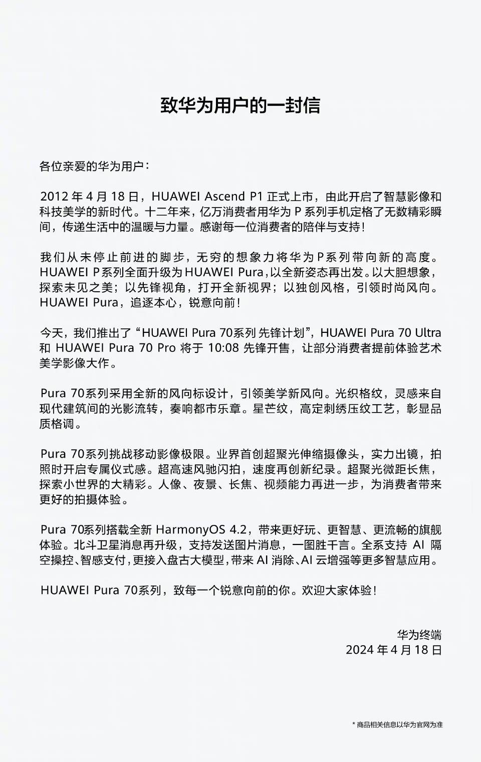 售价5499起!华为Pura70系列先锋计划今天正....推荐人:丁丁小编 发布时间:2024-04-18 13:10:02