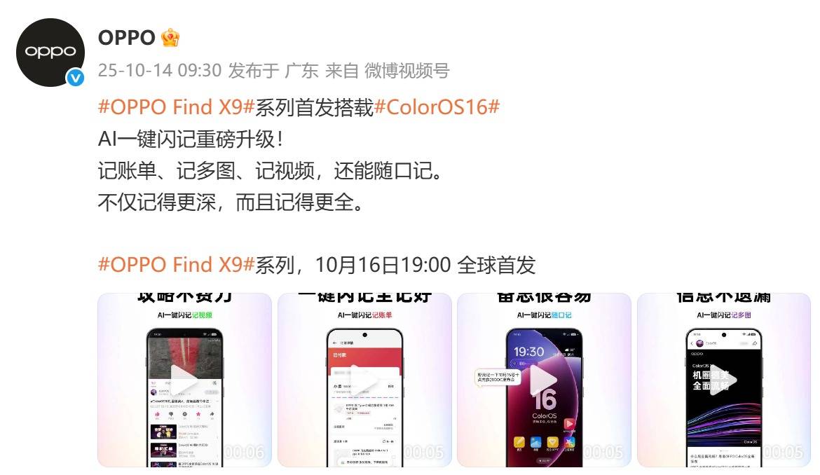 OPPO Find X9系列官宣:首发搭载Colo....推荐人:丁丁小编 发布时间:2025-10-14 12:48:00