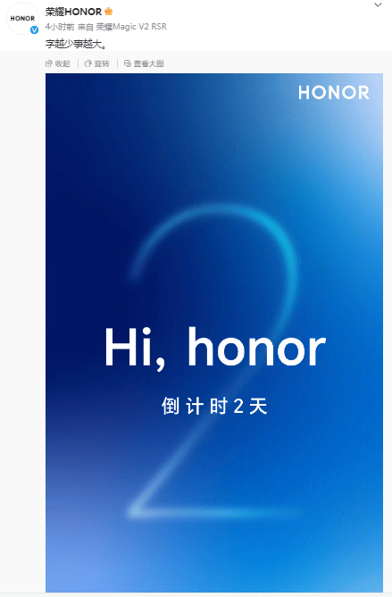 荣耀官方发布“Hi,honor”倒计时 要有什么大....推荐人:丁丁小编 发布时间:2024-03-29 16:10:03