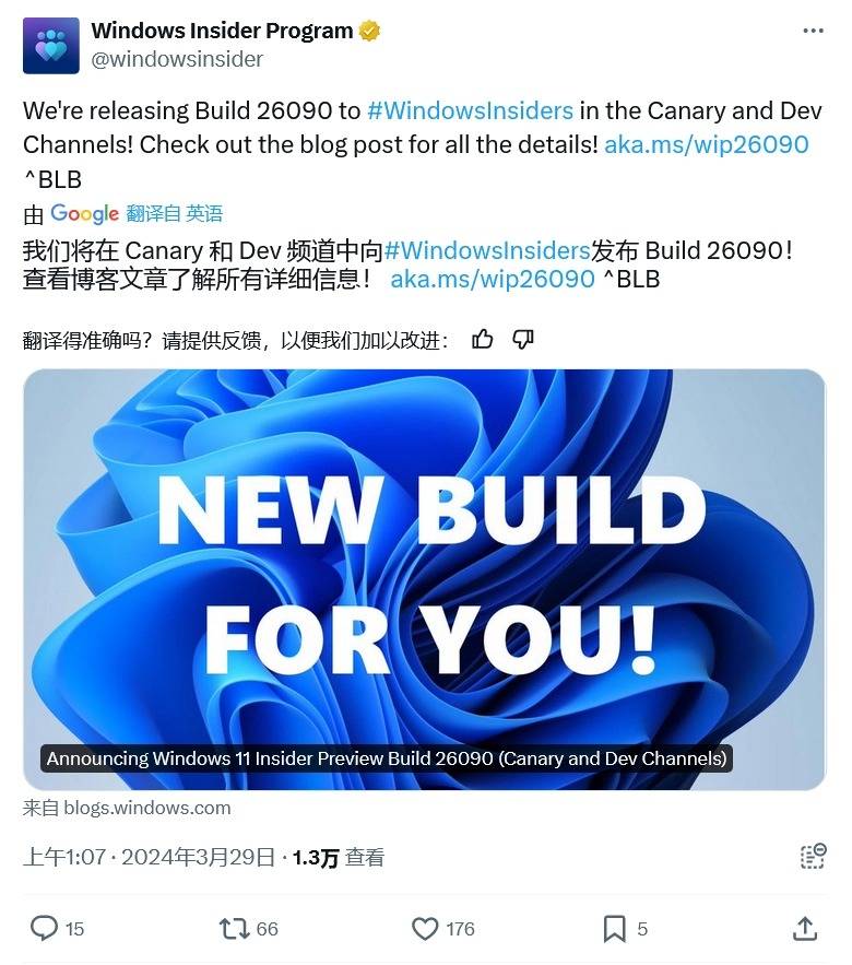 微软Win 11 Canary和Dev频道发布Bu....推荐人:丁丁小编 发布时间:2024-03-29 13:15:03