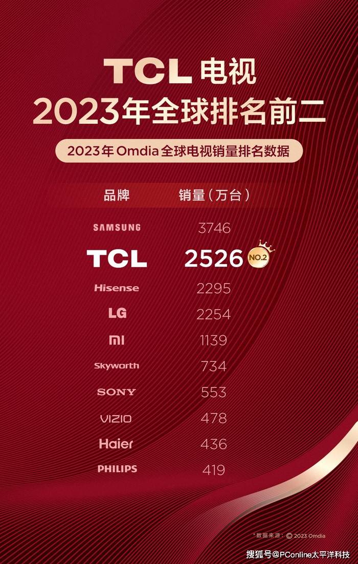 TCL电视2023全球销量再登榜首,夺得第二名,仍....推荐人:丁丁小编 发布时间:2024-02-26 09:10:02