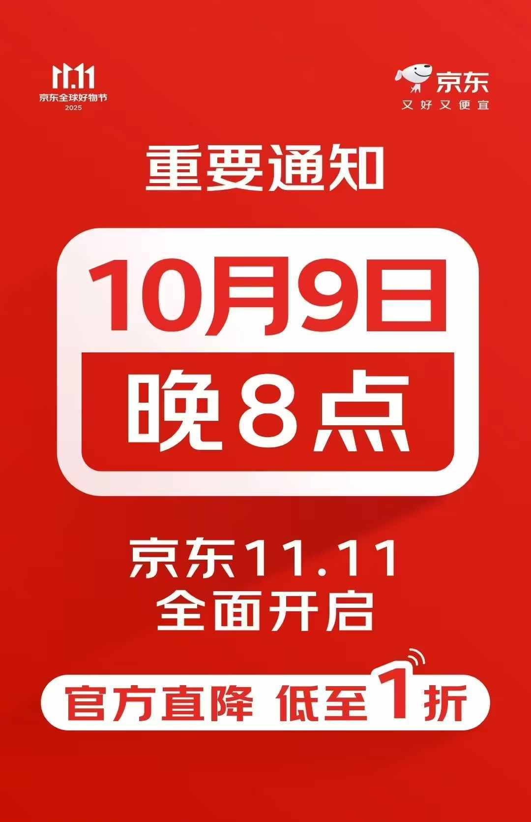 黄金周后直接买!京东11.11大促10月9日晚8点....推荐人:丁丁小编 发布时间:2025-09-29 11:20:51