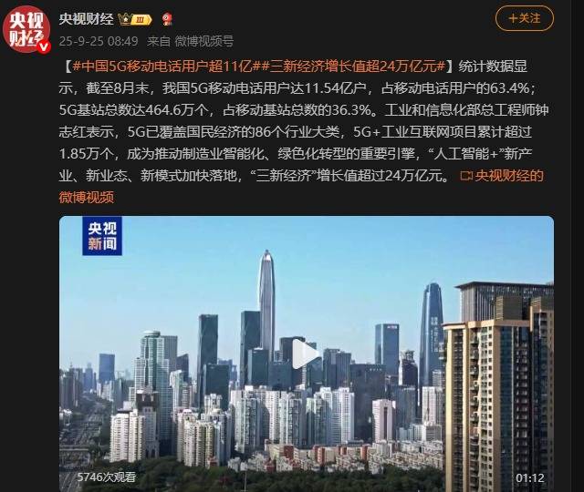 中国5G用户突破11亿 共建共享模式节约投资超38....推荐人:丁丁小编 发布时间:2025-09-25 14:51:02