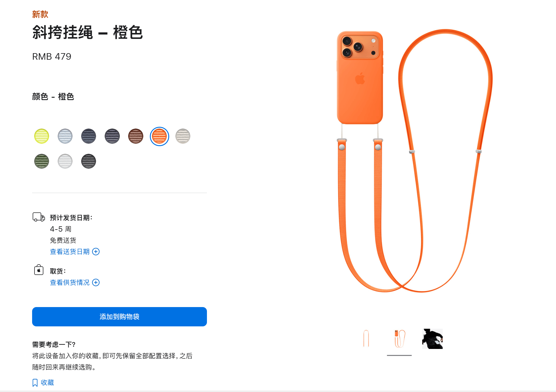 苹果479元iPhone挂绳引热议 橙色款官网售罄....推荐人:丁丁小编 发布时间:2025-09-22 10:27:00