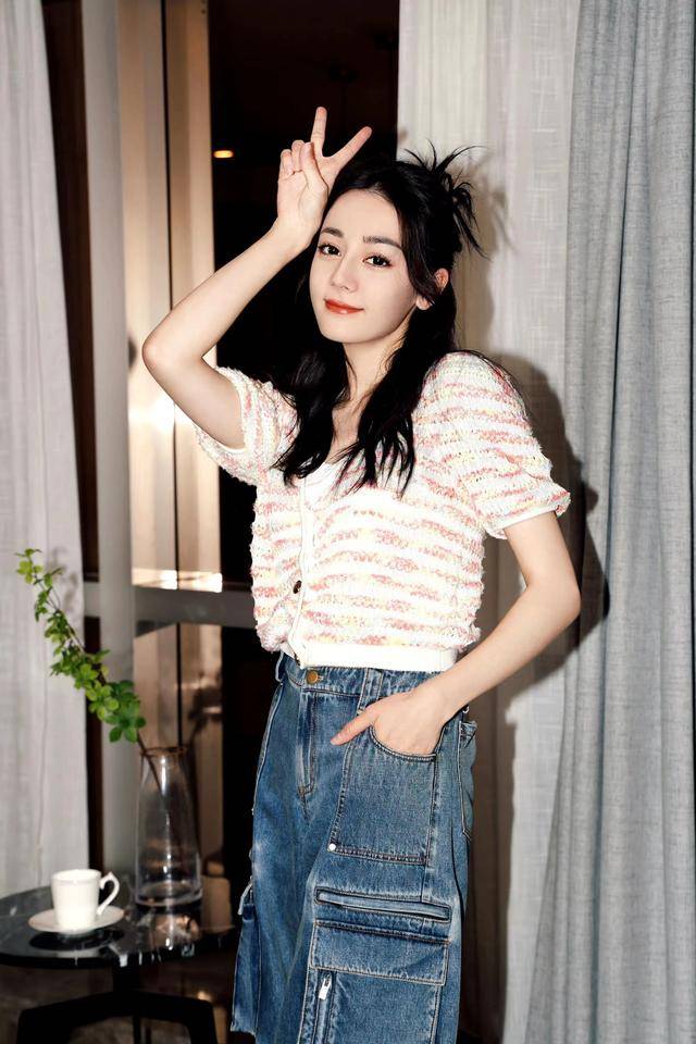 迪丽热巴穿着条纹针织开衫和牛仔工装裤,打造甜美又酷....推荐人:丁丁小编 发布时间:2023-05-18 09:19:57