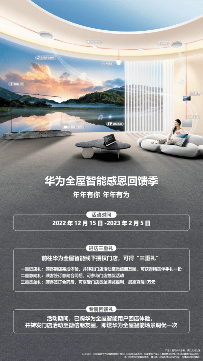 惊喜不断!华为全屋智能感恩回馈季,进店即享福利!推荐人:丁丁小编 发布时间:2023-05-11 21:00:00