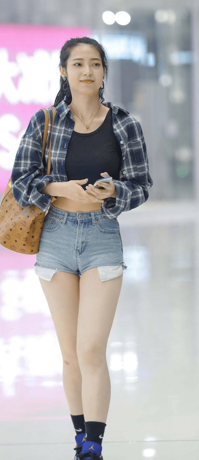 年轻女孩的搭配,牛仔短裤格子衫,青春靓丽风推荐人:丁丁小编 发布时间:2023-05-08 11:30:21