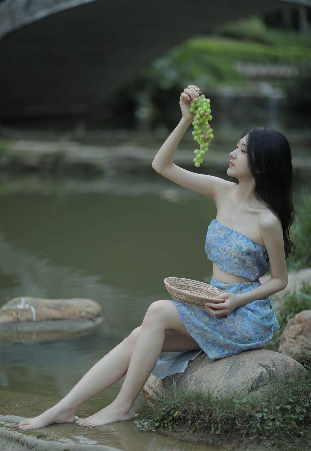 纯美少女蓝花抹胸长裙戏水唯美摄影,娉婷身姿美足如玉推荐人:丁丁小编 发布时间:2023-04-27 12:30:00