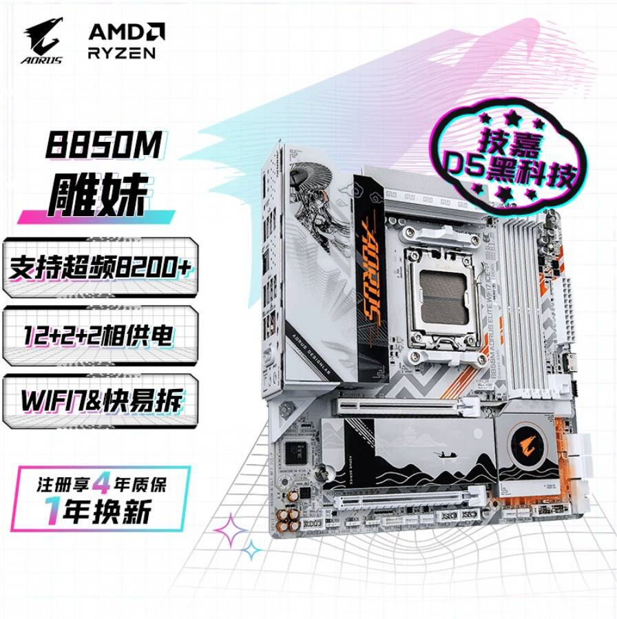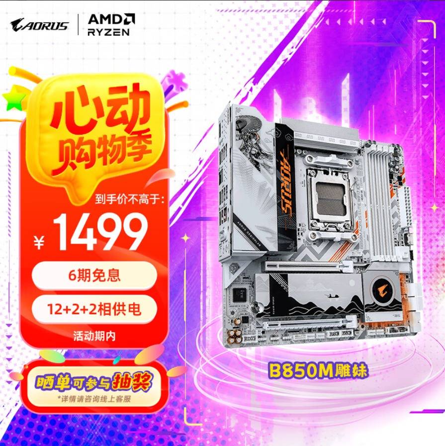— 618购物季选技嘉B850M AORUS ELITE WIFI7 ICE-P雕妹主板就对了!享免息还享抽奖! —