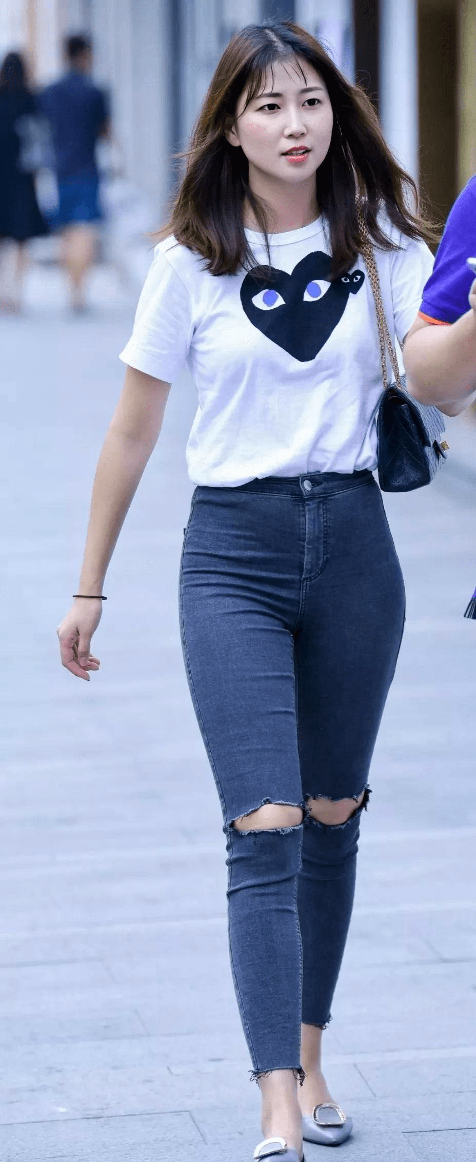 — 身穿短袖T恤搭配牛仔裤身材高挑显瘦,清新脱俗有气质 —