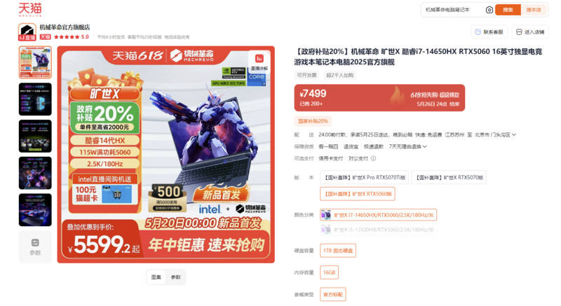 — 国补20%进行时!机械革命极光X/旷世X RTX 5060游戏本香爆登场 —