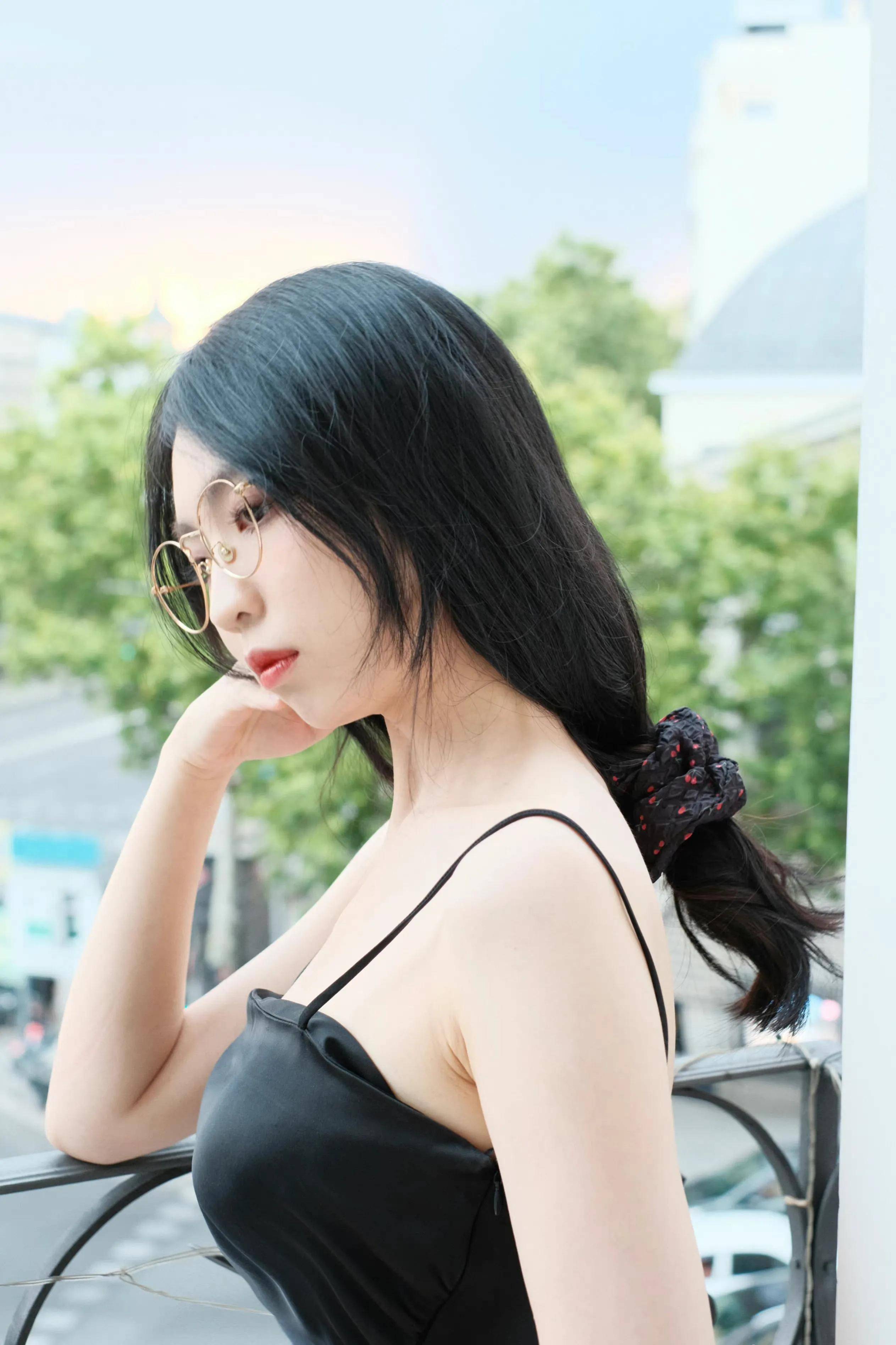 — 身穿黑色针织连衣裙搭配细高跟显腿长,端庄大方有气质 —