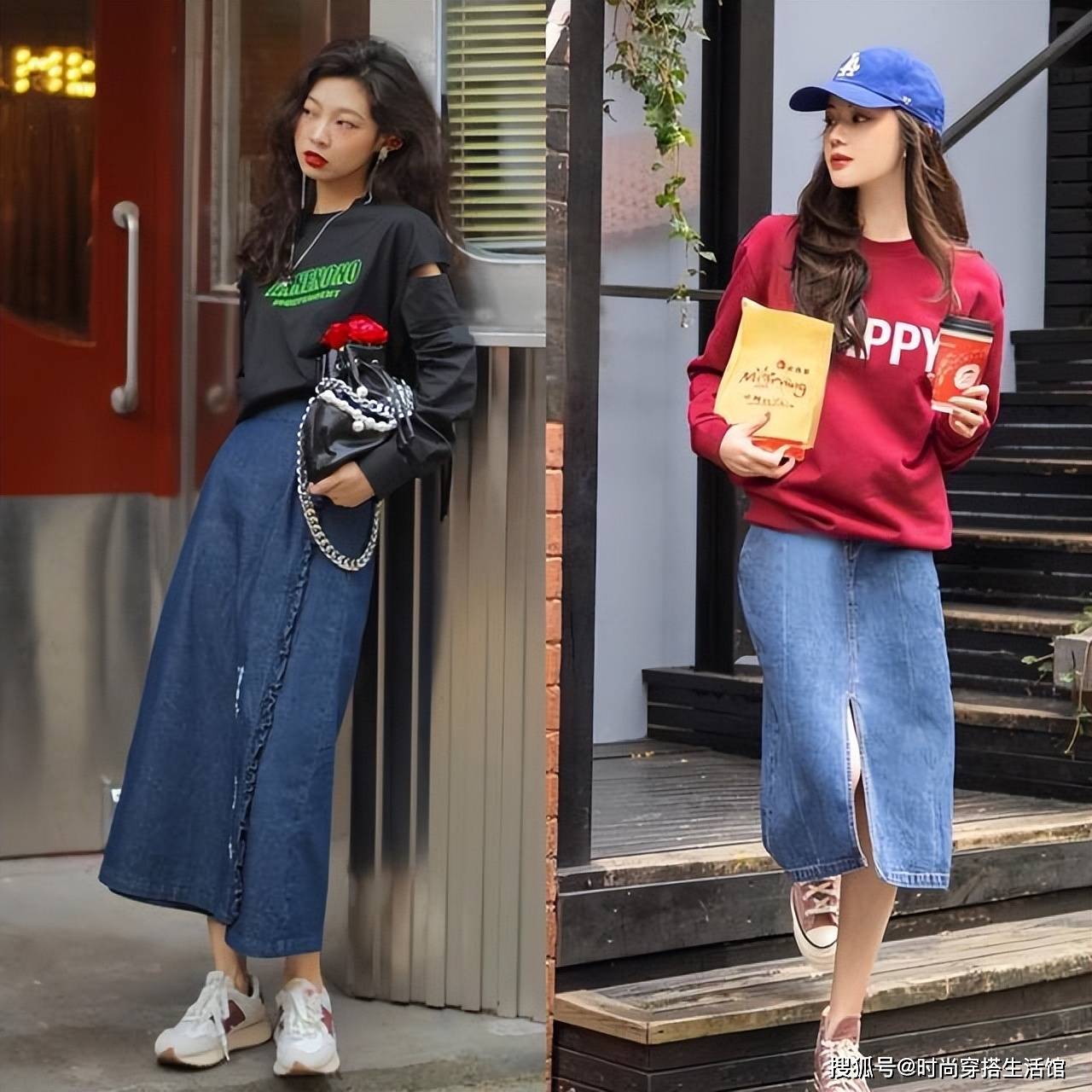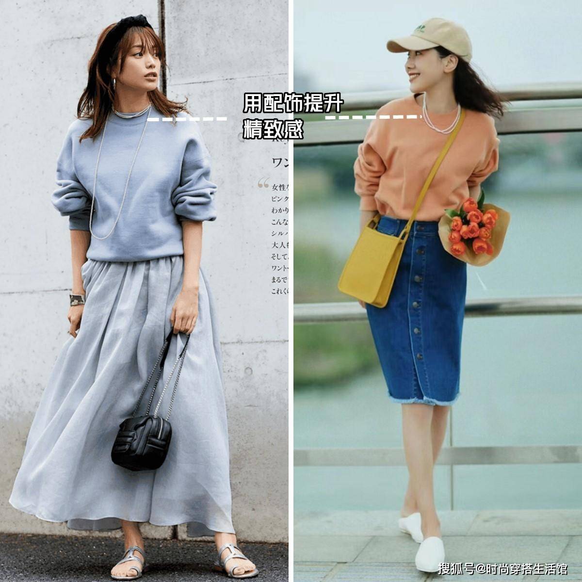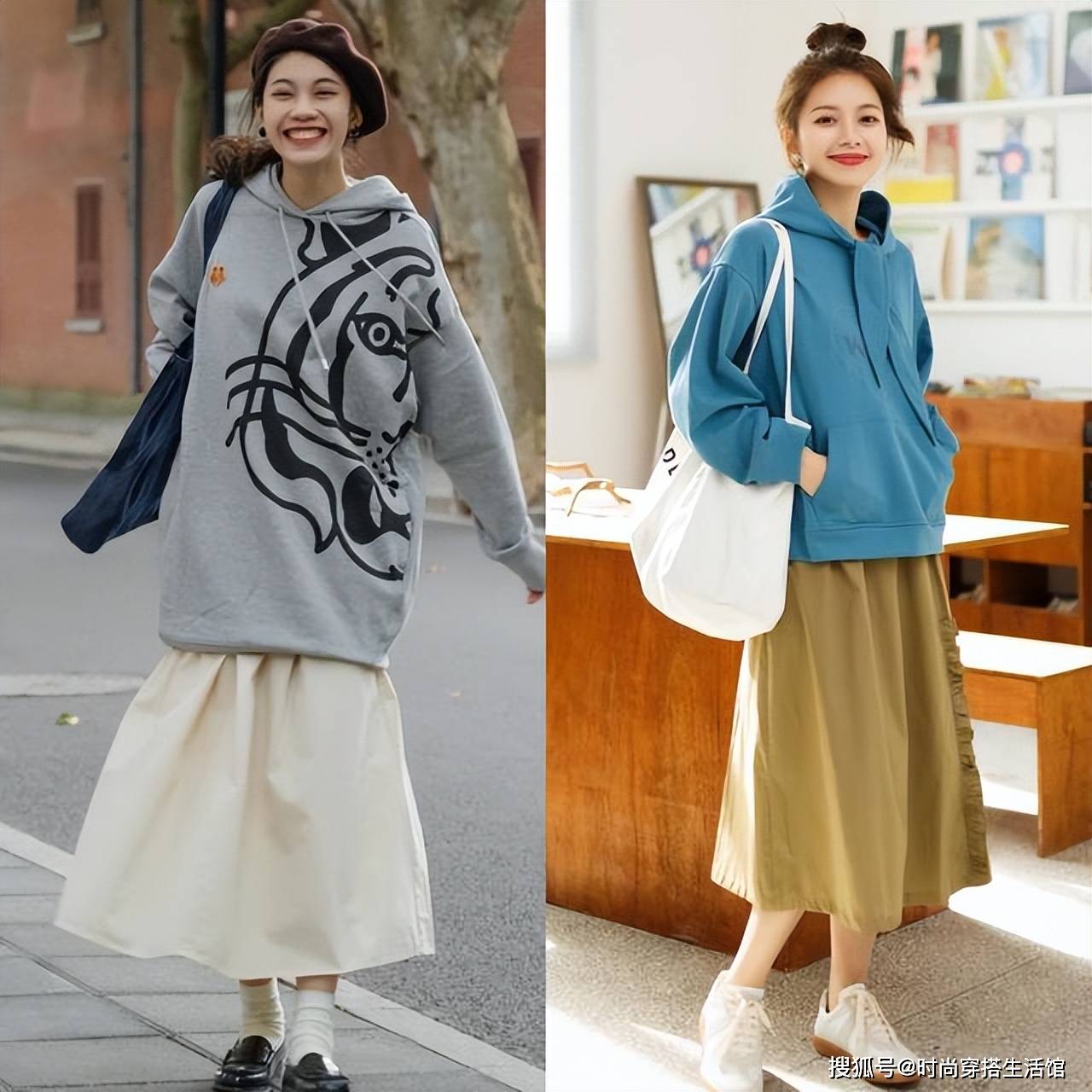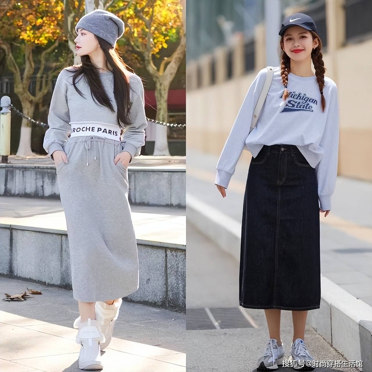 — 今年春天“卫衣+半身裙”又火了,上身洋气又显高,特适合小个子 —