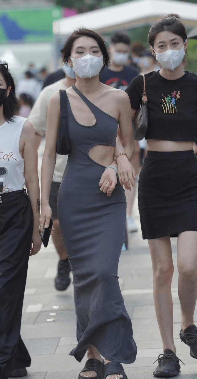 — 前卫款斜肩长裙搭配,身材不好的真不敢穿,魅力不一般 —