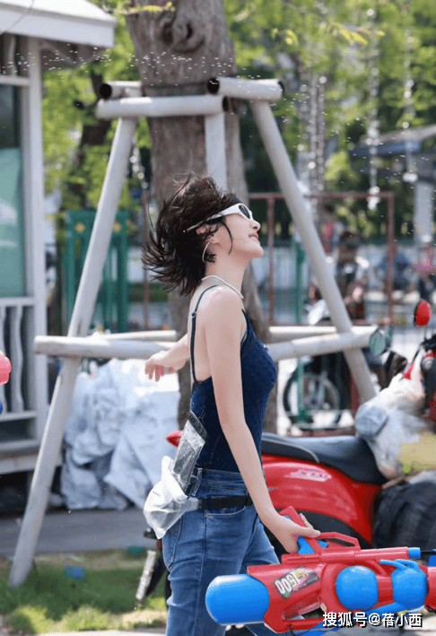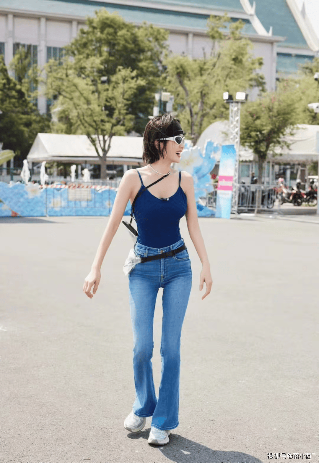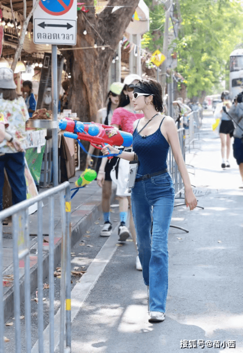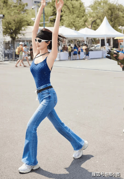 — 秦岚带火了“辣妹风”穿搭:蓝色吊带+牛仔裤,前凸后翘太迷人 —