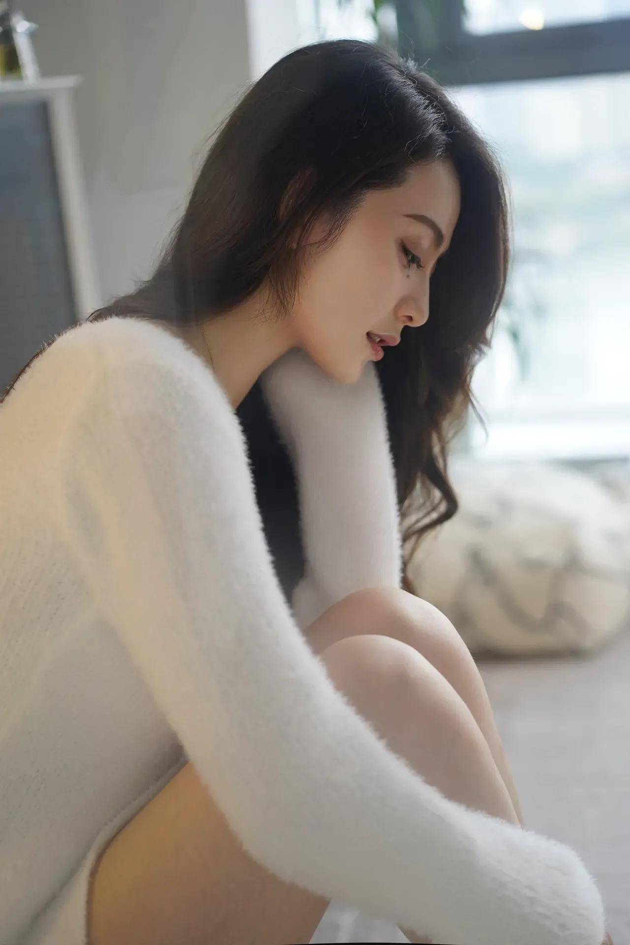 — V领针织毛线衣,肤色光滑细腻韵味十足的小姐姐 —