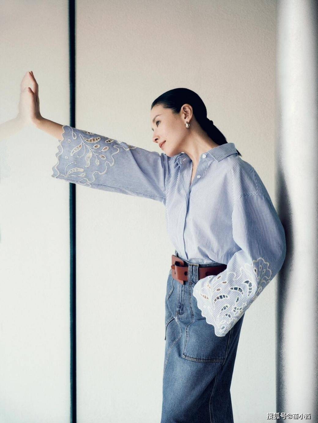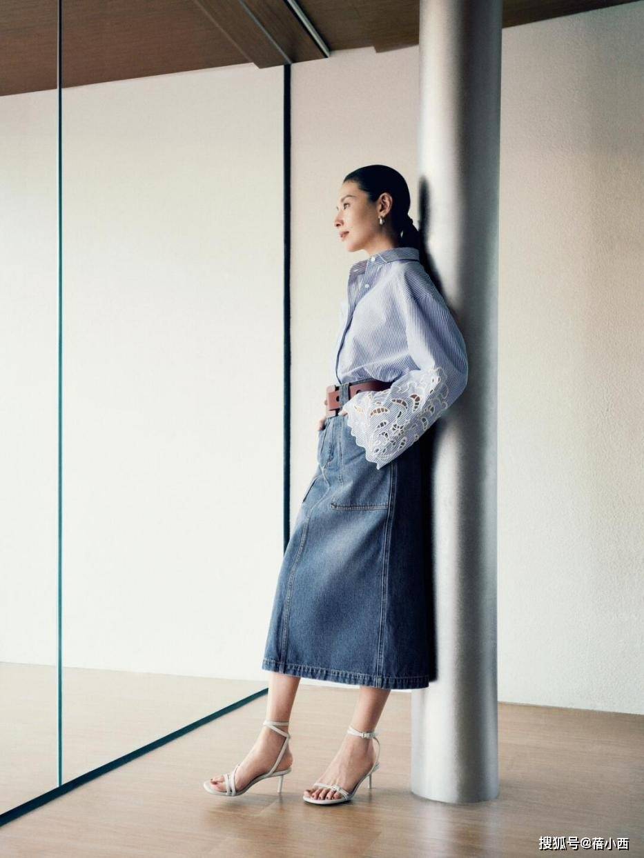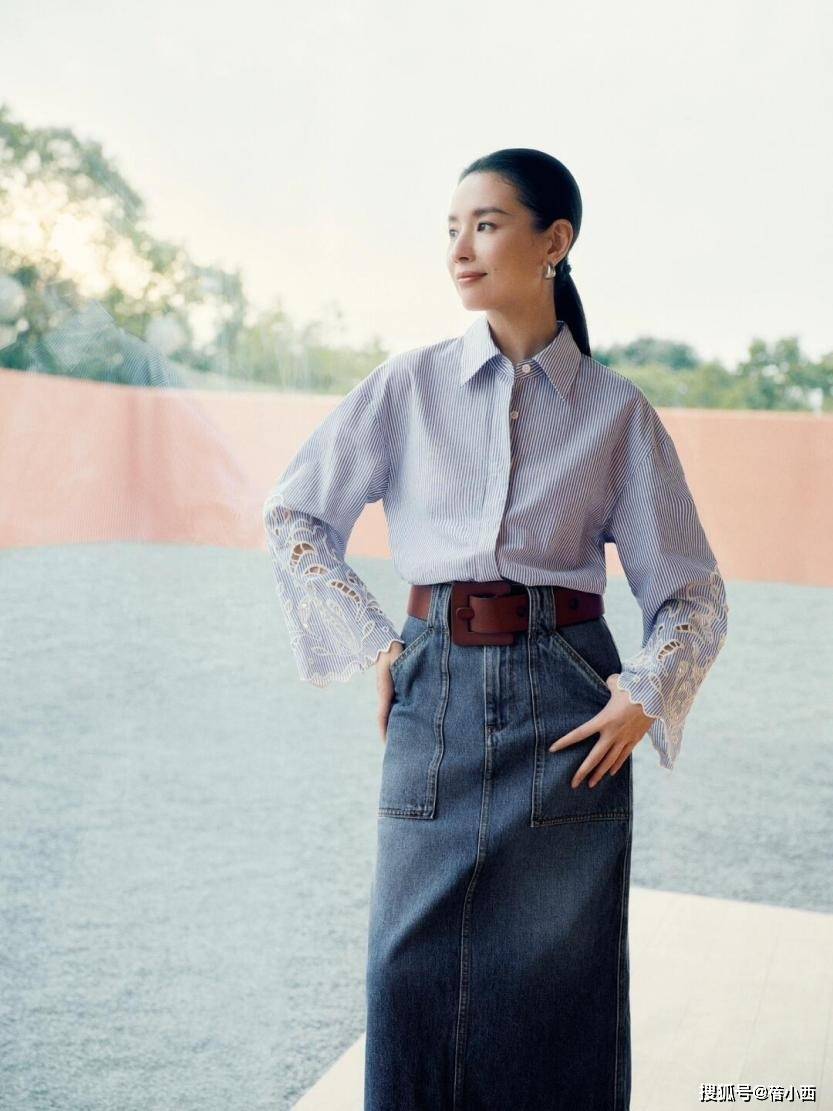 — 董洁夏日不费力穿搭:衬衫+短裤+休闲鞋,45岁美得似少女 —