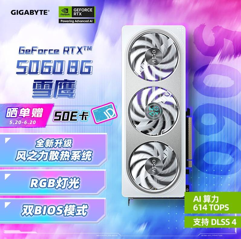 — 技嘉雪鹰GeForce RTX 5060 AERO OC 8G:轻松驾驭2K游戏,全新50系甜品降临 —