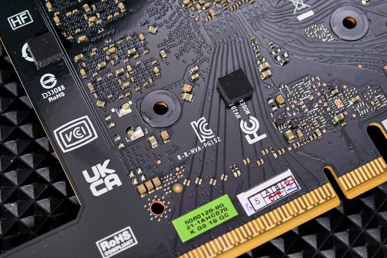 PG152方案,其实结合上下面的NVIDIA标识,不难看出其源自NVIDIA公版方案设计之一。相比之前曝光的只有x8长度的PCB来看,此款PG152方案PCB明显更长一些,每个元件之间的空间也更为宽敞,减少了热量积聚的风险。