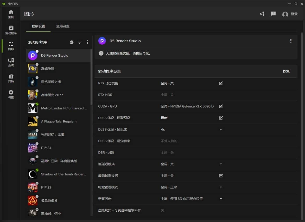 再看看另外一款渲染器,D5 Render是一款基于DXR和光线追踪技术构建的GPU渲染器。正因为其有光线追踪技术,其渲染的画面相当出色。这款软件在RTX 40系显卡测试时支持了DLSS 3帧生成,而现在随着RTX 50系显卡的发布,它也可以通过NVIDIA App的方式支持最新的DLSS 4多帧生成功能。