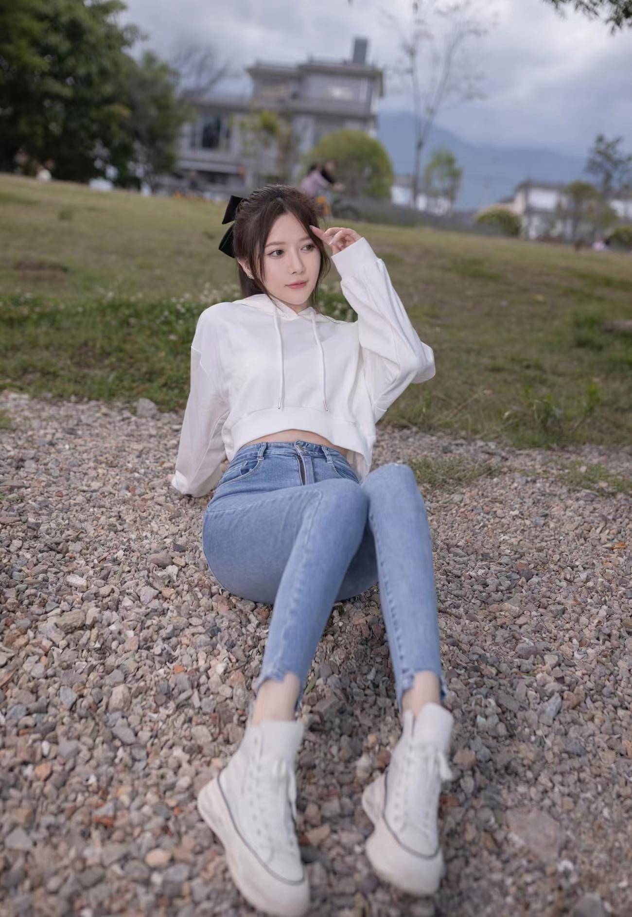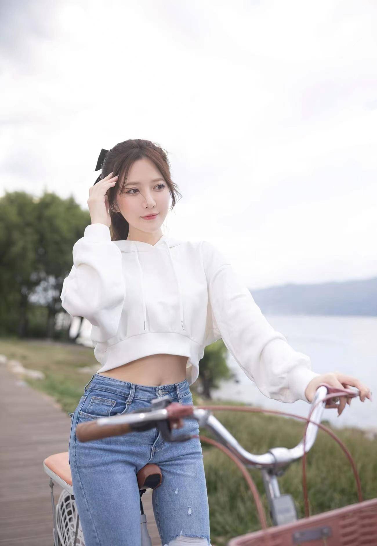 — 青春美少女,长相甜美身材苗条,骑着单车陪你一起看夕阳可好! —
