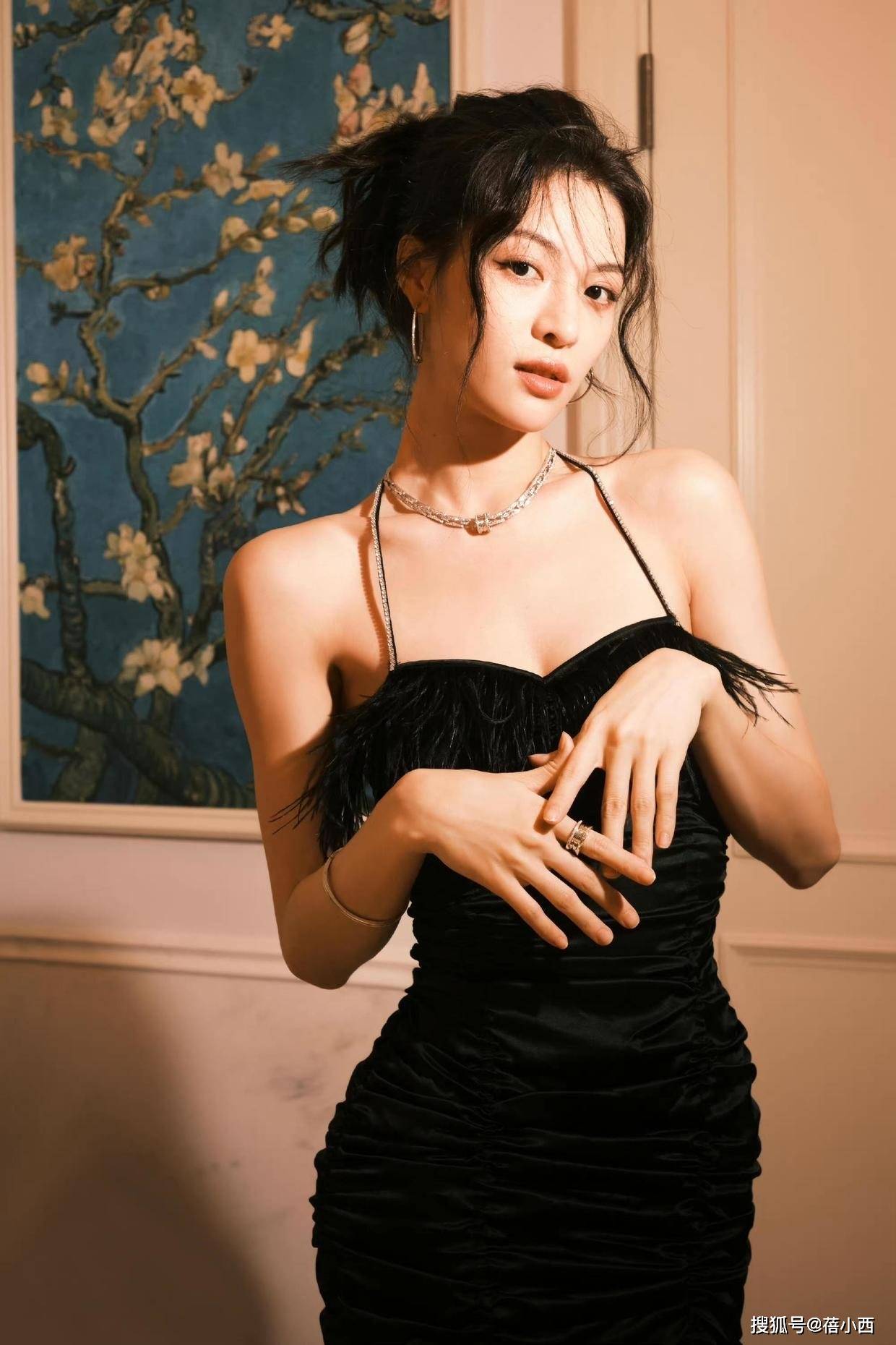 — 钟楚曦在浴缸拍大片,穿小黑裙就靠2根带子撑住,真不怕带子掉了 —