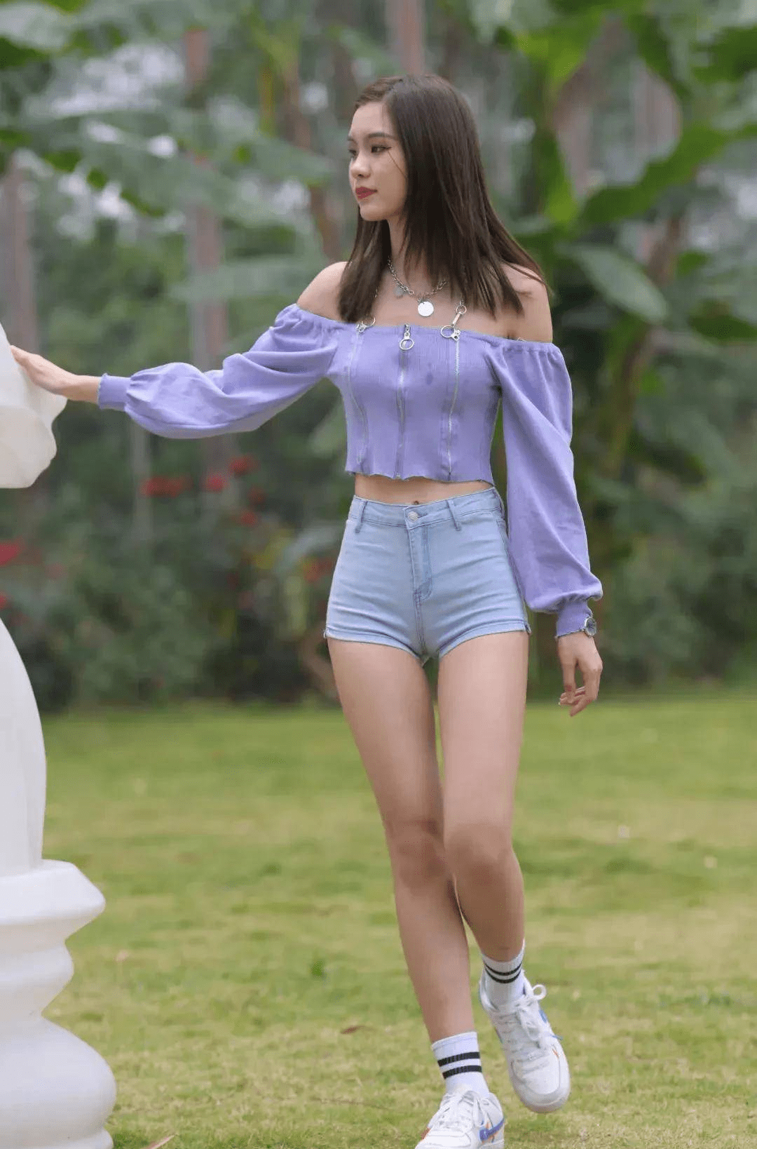 — 小姐姐脚踩白色铆钉鞋,身穿黑白拼色无袖衫搭黑色裙,尽显女神范 —