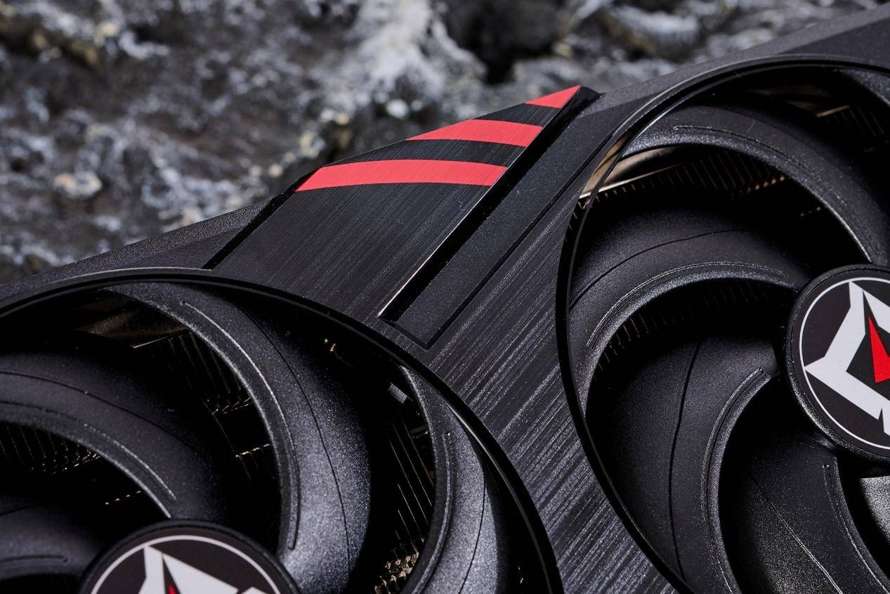 黑色导流罩上布满了棱角分明的线条和几何切割面,配合两侧的红色装饰条,整体呈现出一种低调但不失力量感的视觉效果。