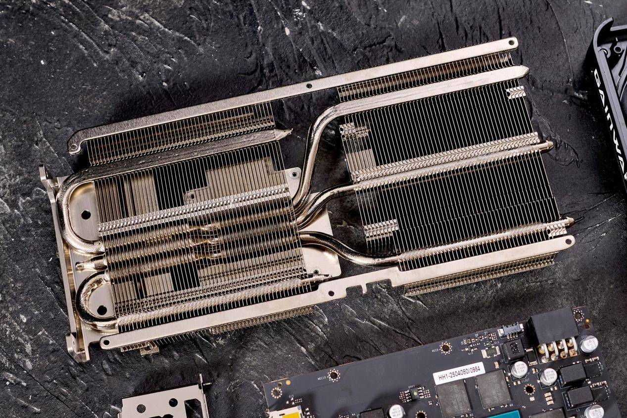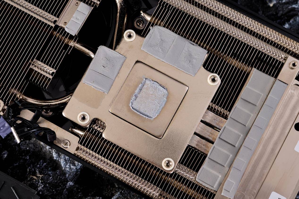 散热模块包括直接接触GPU芯片的铜底板,搭配三根6毫米镀镍热管,采用回流焊接技术优化热传导。这种“铜底直触”设计确保热量从GPU快速传递到散热片。