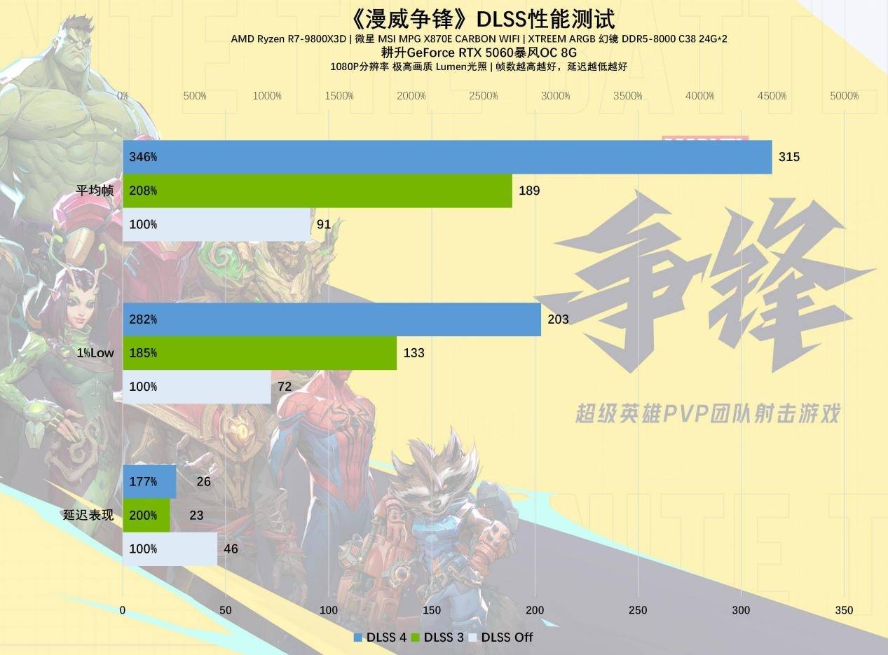 网游方面我们测的是《漫威争锋》,这款游戏在RTX 50系显卡首发之时,它还没有完全适配DLSS 4,玩家想要体验多帧生成功能还需要依靠NVIDIA App的DLSS 4优设功能。不过现在《漫威争锋》也正式支持DLSS 4了,与上面的游戏一样,玩家在游戏设置中就能直接开启,并且提供了2x、3x以及4x选项,玩家可以随意选择是插一帧、插两帧还是插三帧。