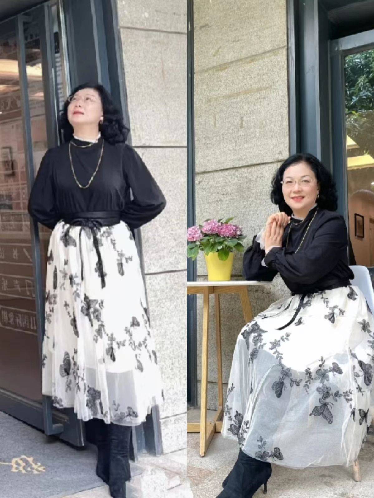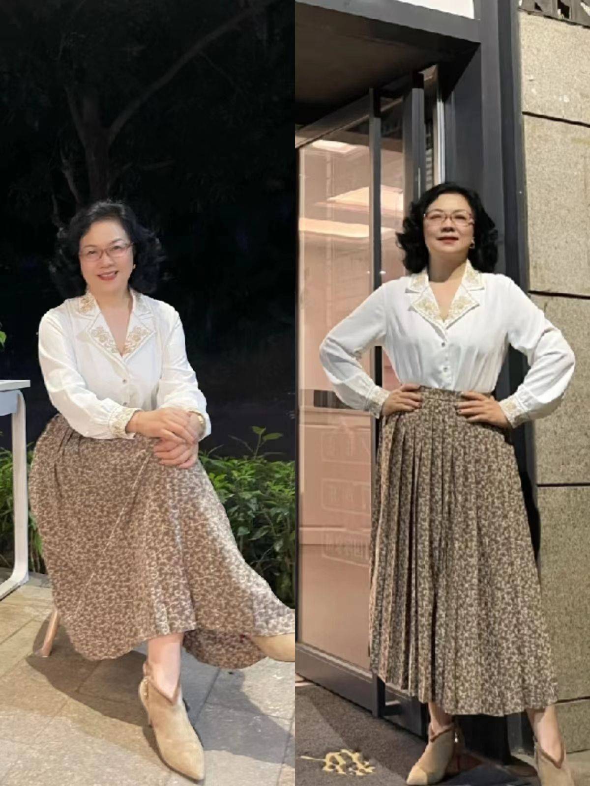 — 这才是微胖妈妈该有的打扮,“长裙+尖头鞋”,显苗条又有女人味 —