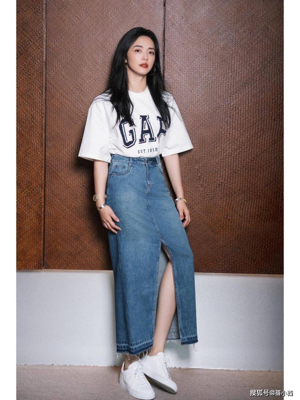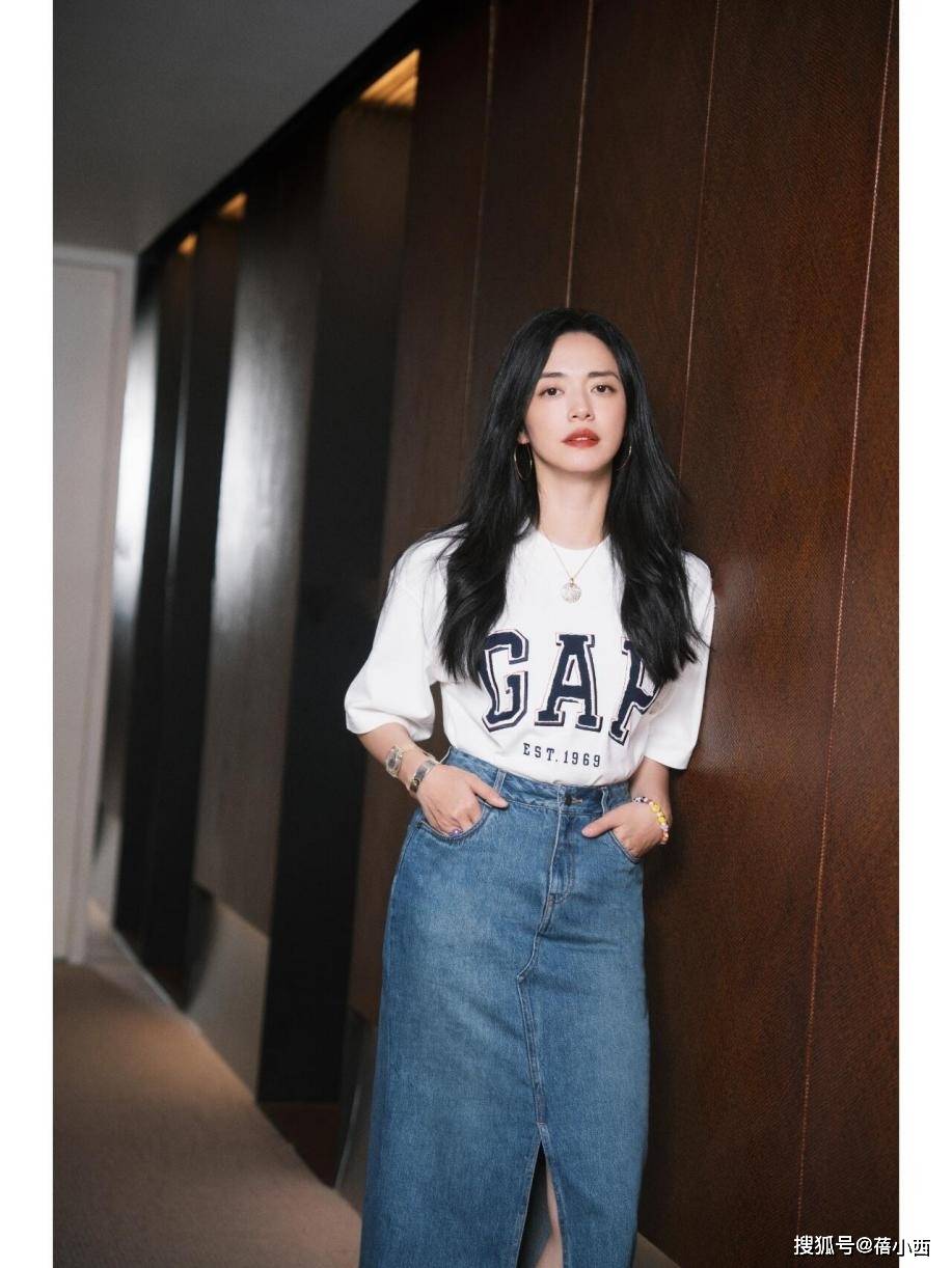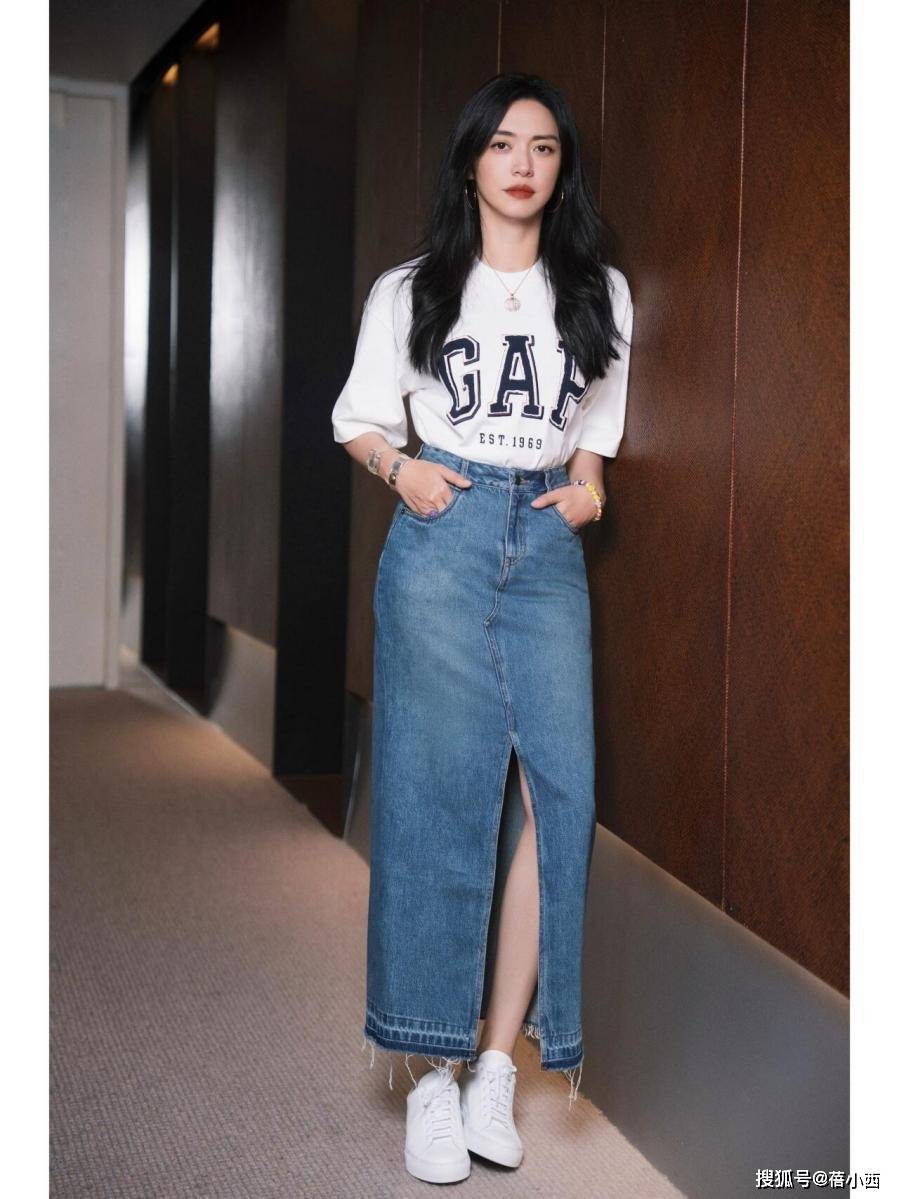 — 姚晨夏日新穿搭:短袖+开叉裙+小白鞋,减龄大气,45岁嫩得像25岁 —