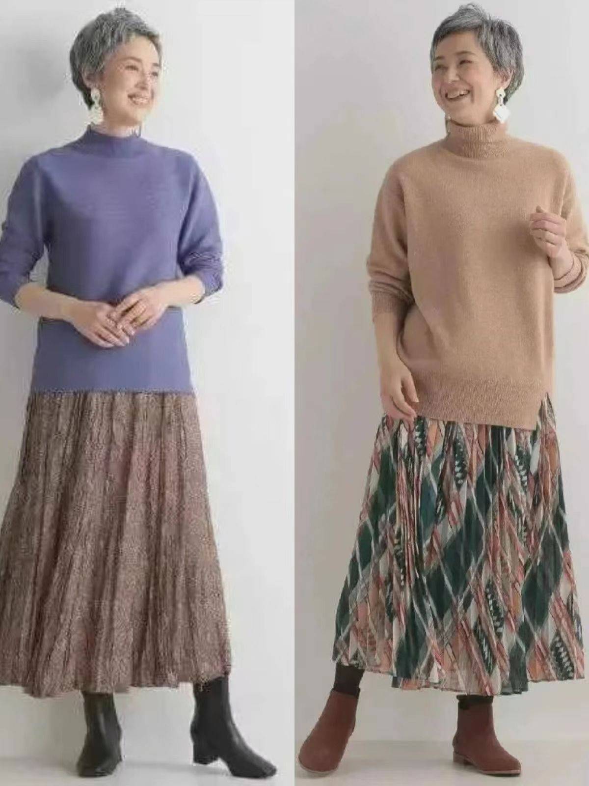 — 不放任穿搭的中老年人有多美?看看她们就知道了,裙长过膝太得体 —