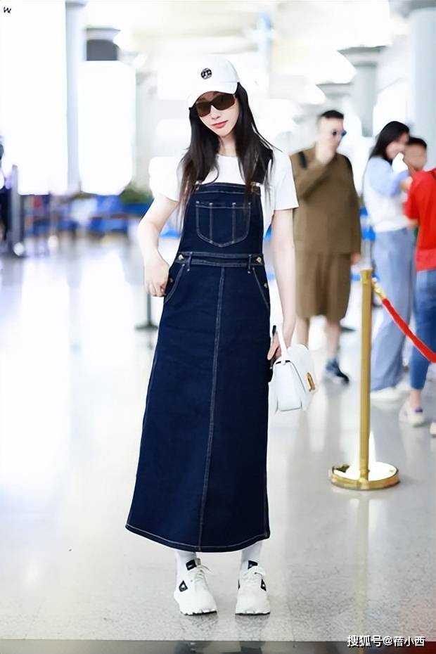 — 柳岩带火了“无龄感”搭配,t恤+背带连衣裙,嫩的像18岁 —