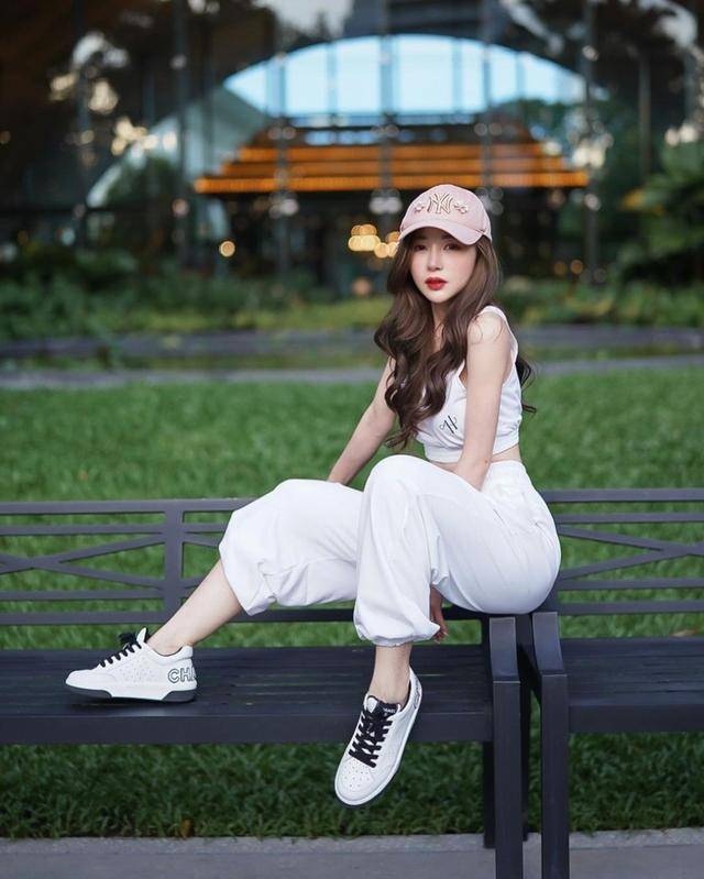 — 御姐范美女白色运动服休闲风,运动胸衣暗藏“小心机” —