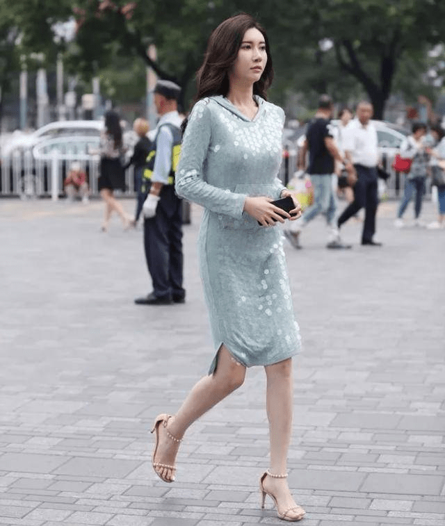 — 柔美曲线身材,搭配吊带连衣裙,展现优美线条感 —