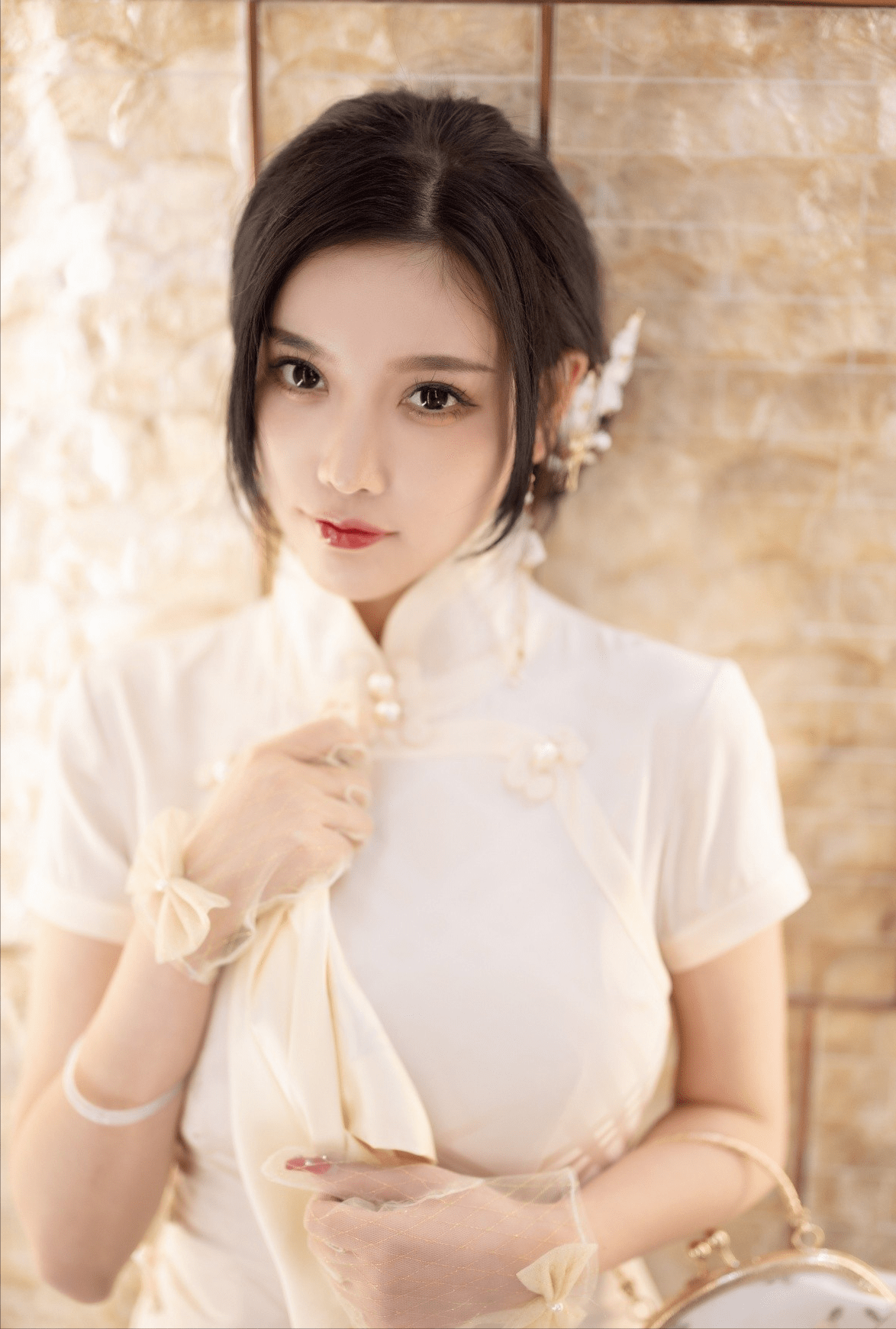 — 现代的眼镜搭配古雅的开叉旗袍 是不是有种不一样的感觉? —