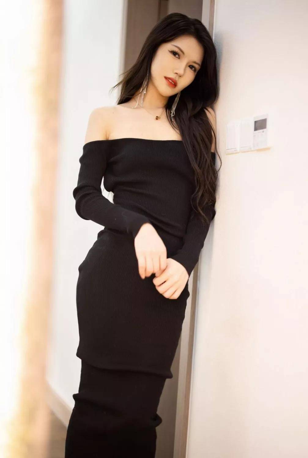 — 黑色一字肩收身连衣裙显得千姿百态,落落大方 —