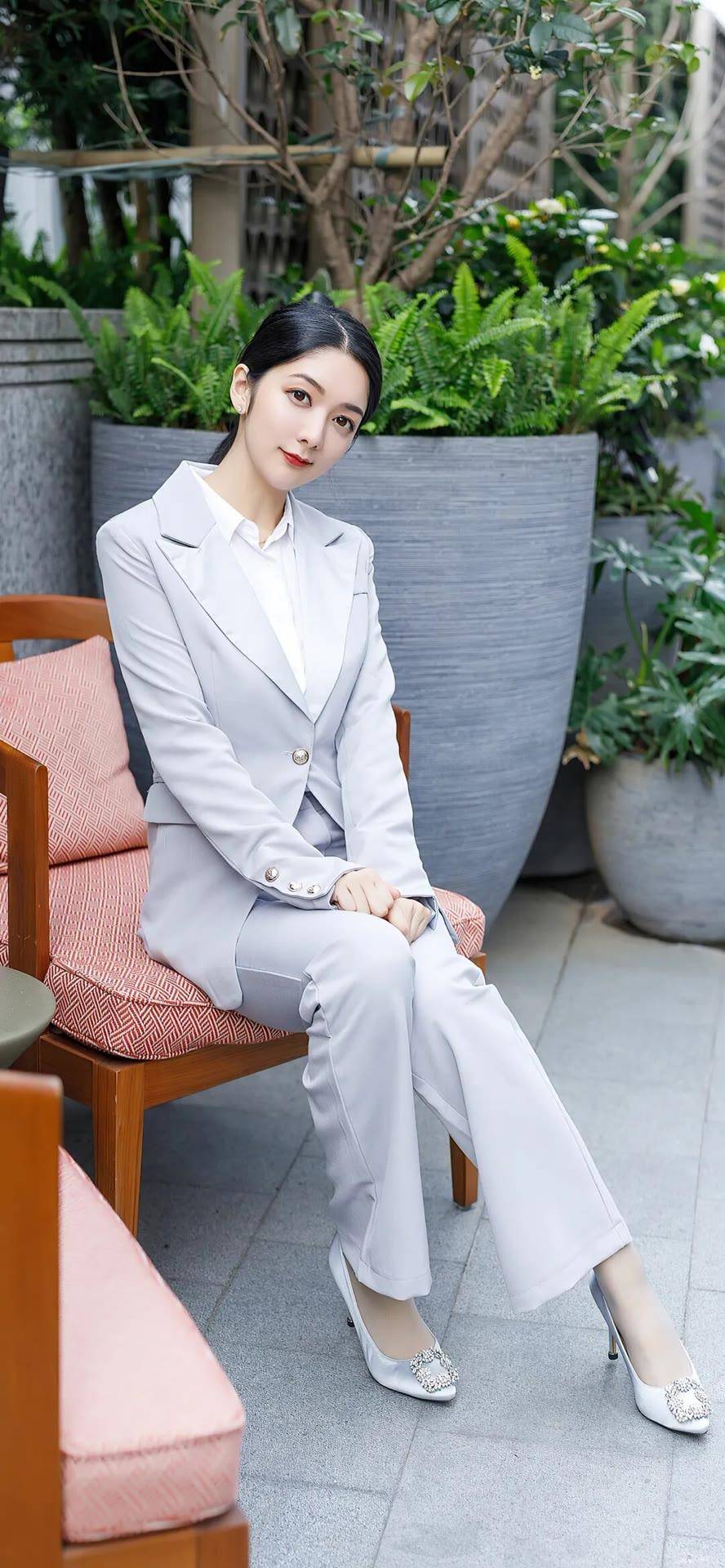 — 时尚穿搭:职场白领女性OL浅色系套裙搭配高跟鞋,精干优雅有品位 —