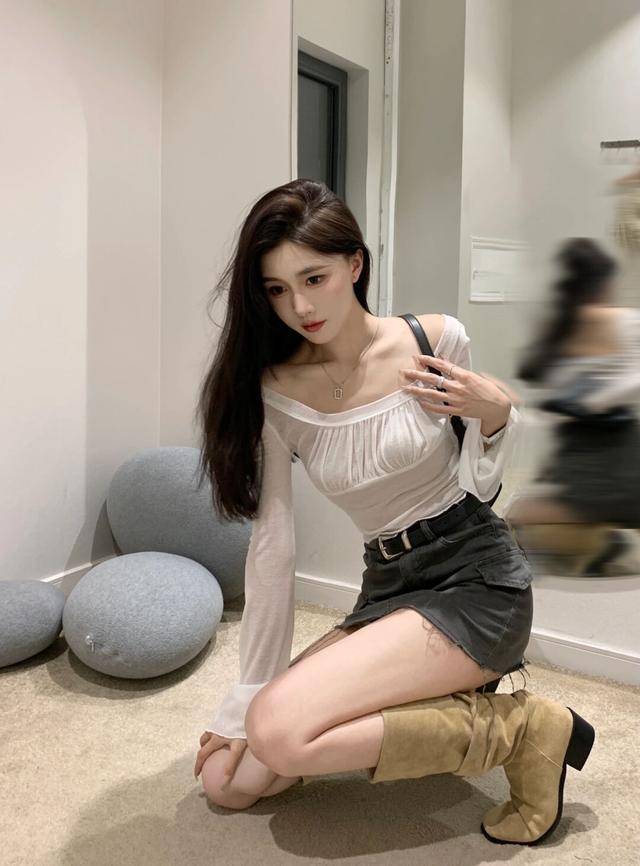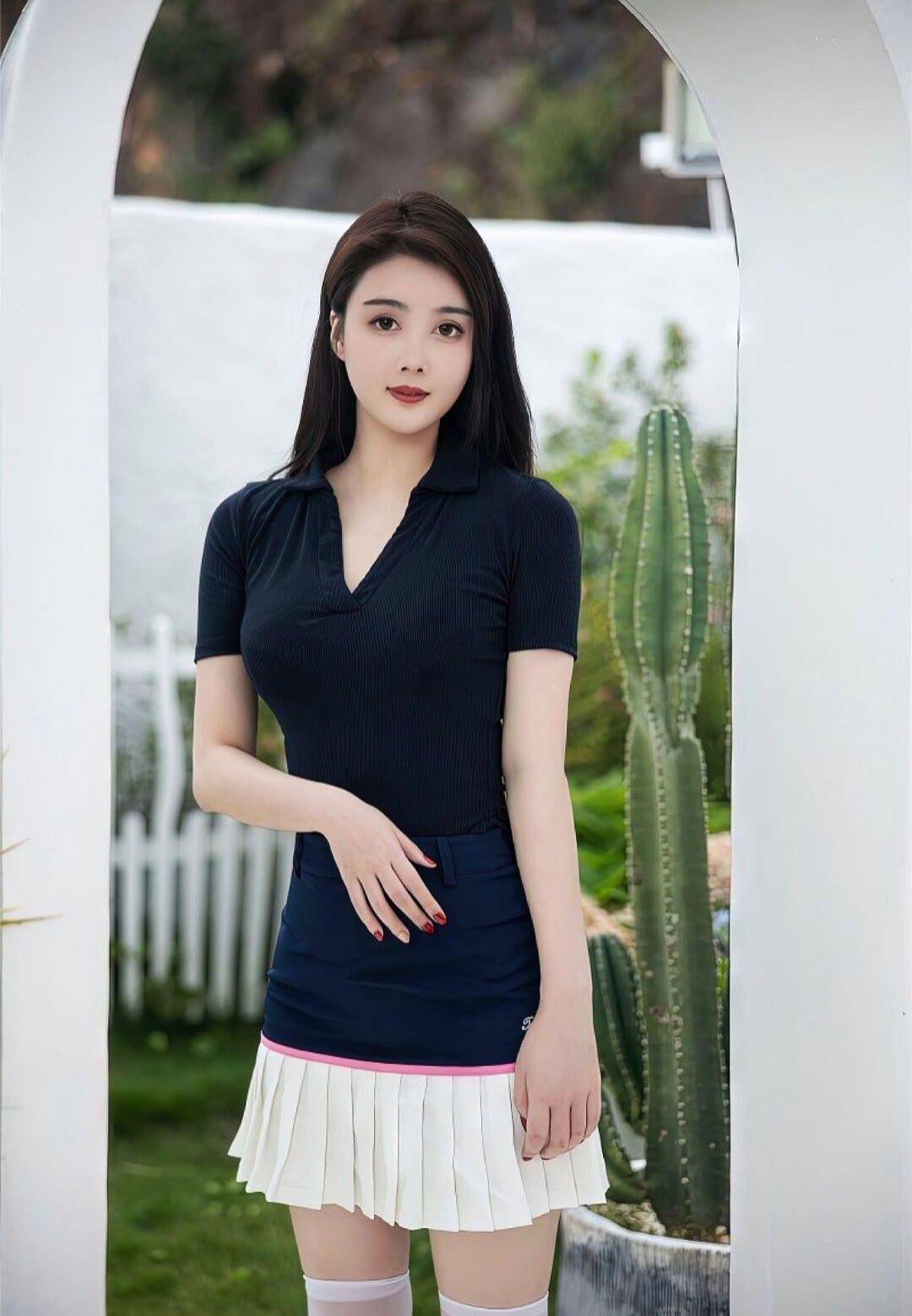 — 美女写真:长发运动风美女百褶裙搭配白丝袜,五官精致美出高级感 —