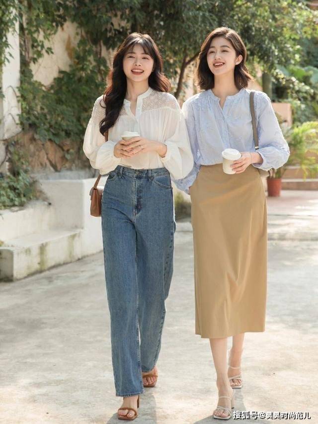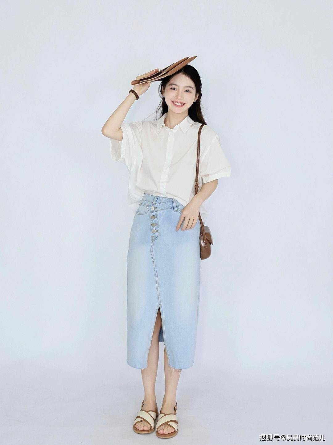 — 夏日职场穿搭,还得是衬衫+半身裙或牛仔裤搭配,通勤时尚又洋气 —