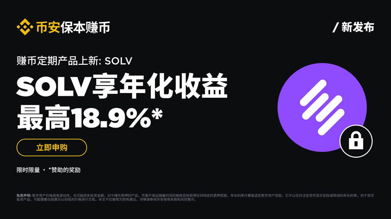 SOLV定期产品上线:最高18.9%年化收益推荐人:丁丁小编 发布时间:2025-09-03 00:05:59