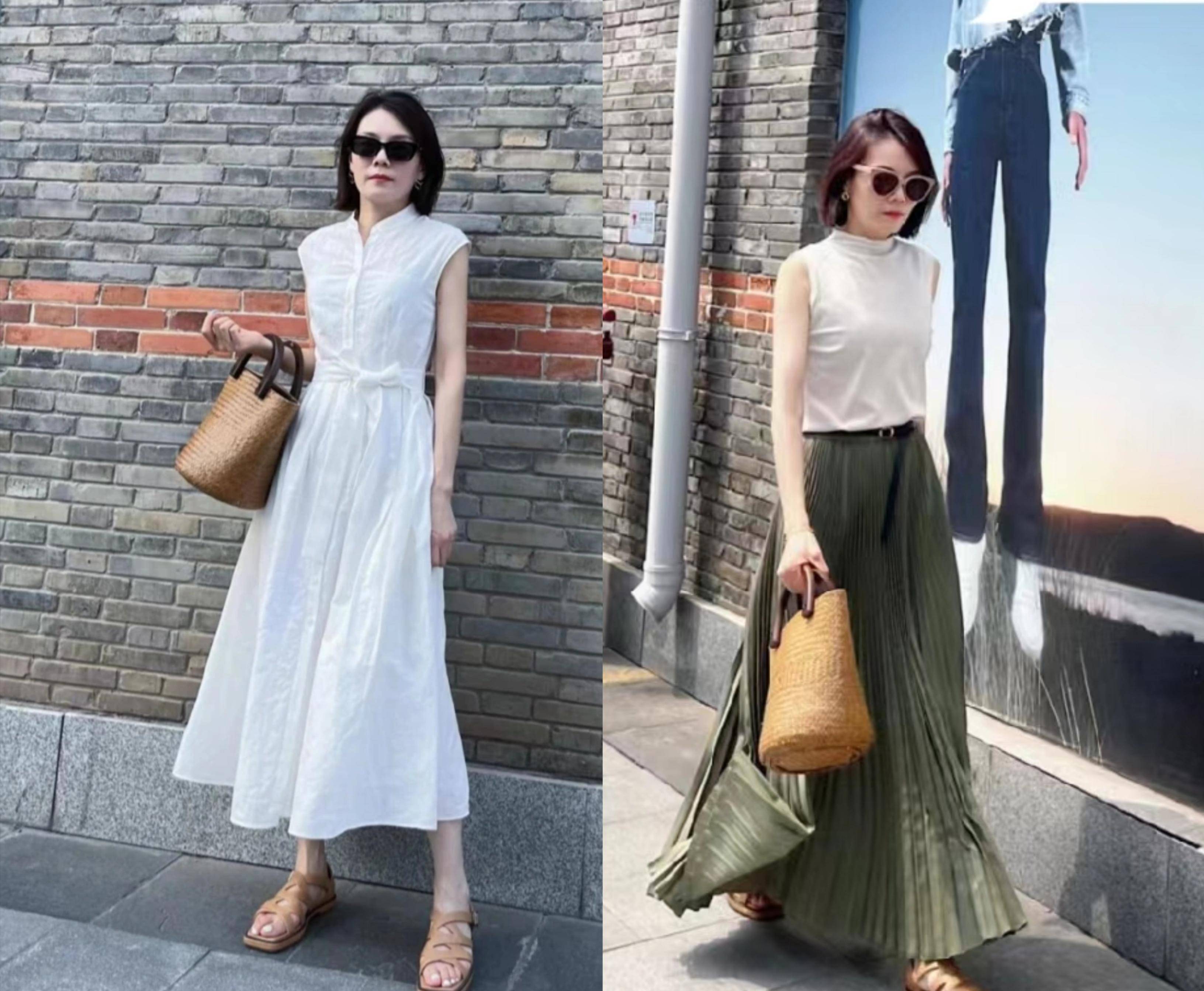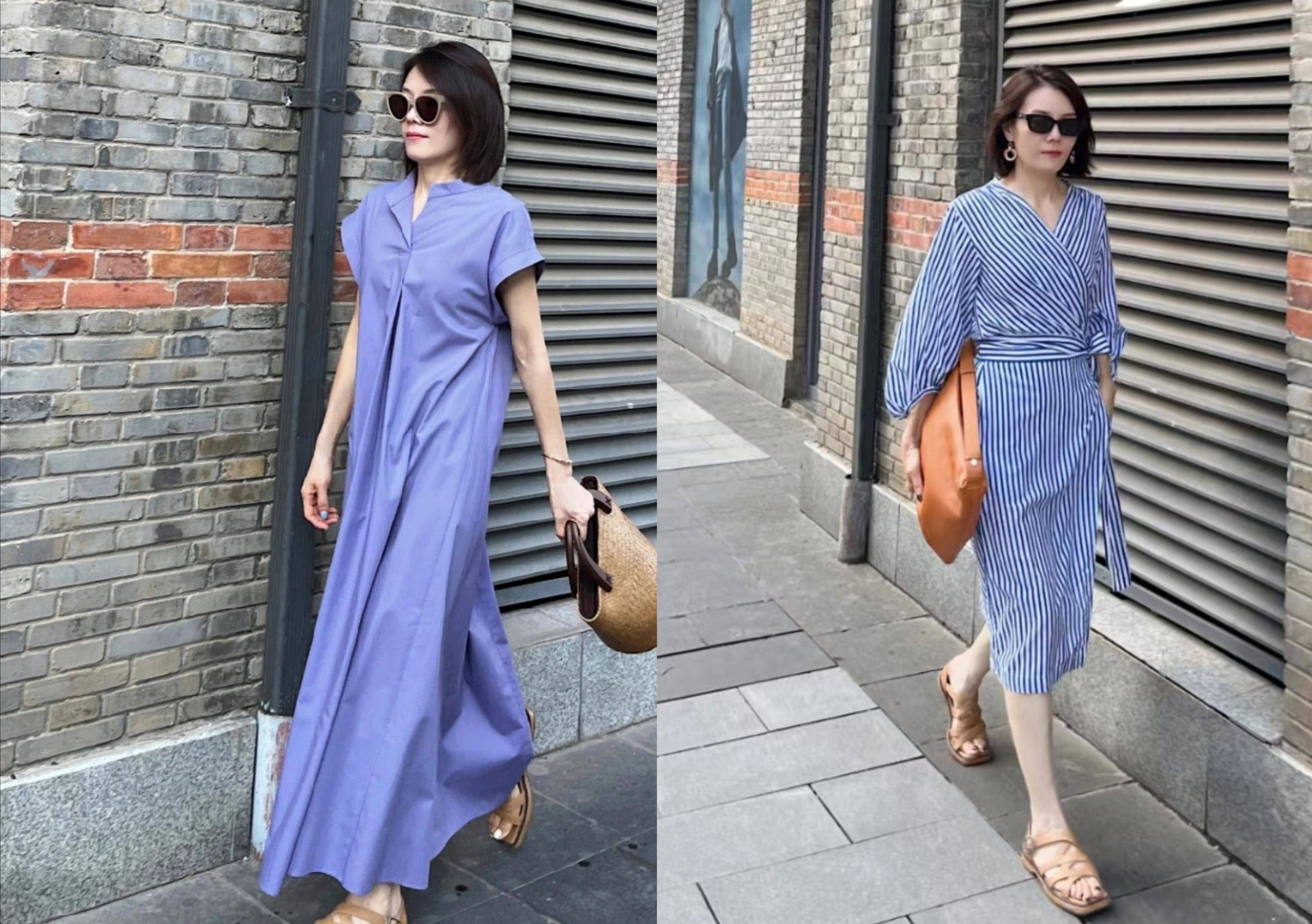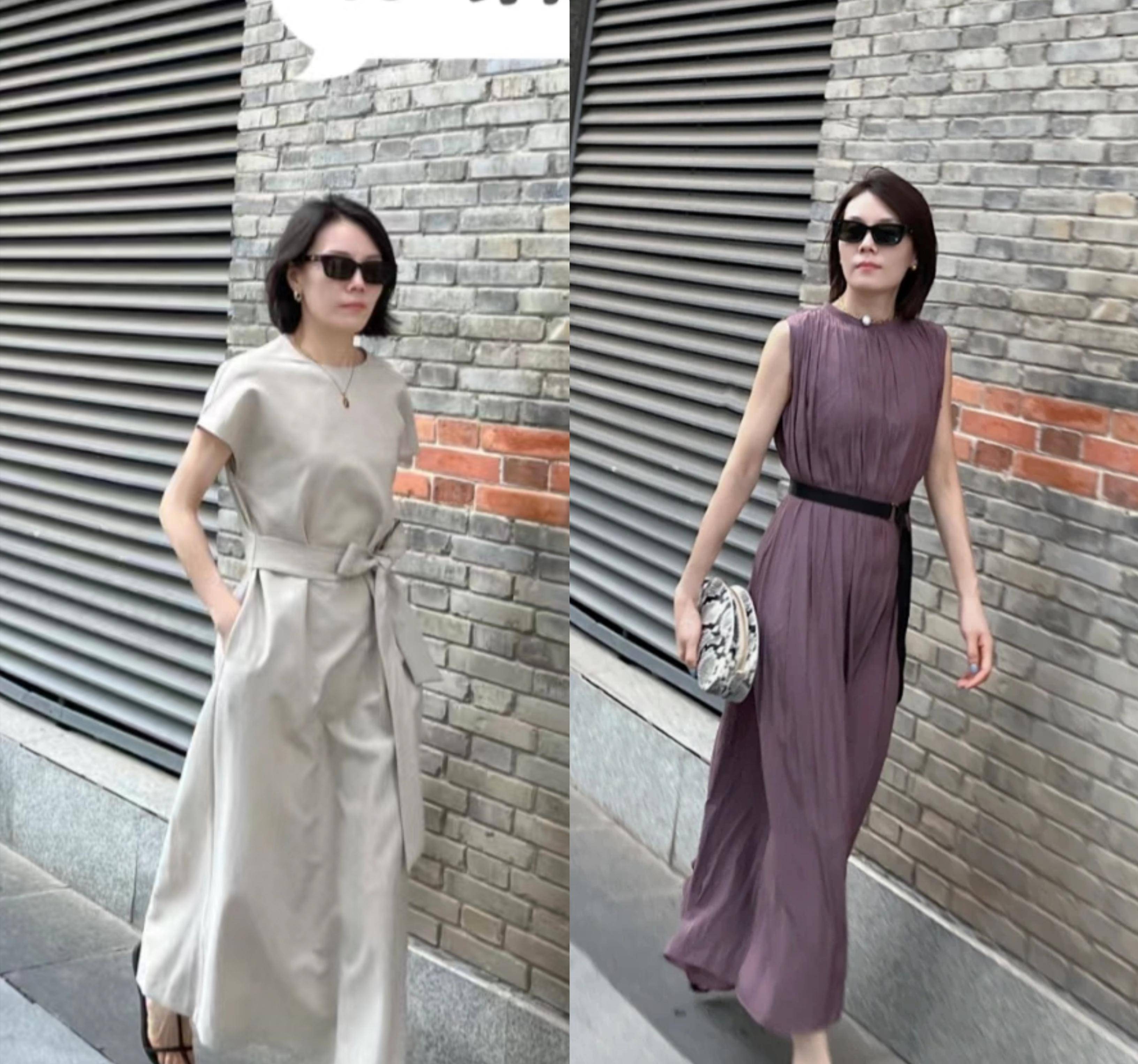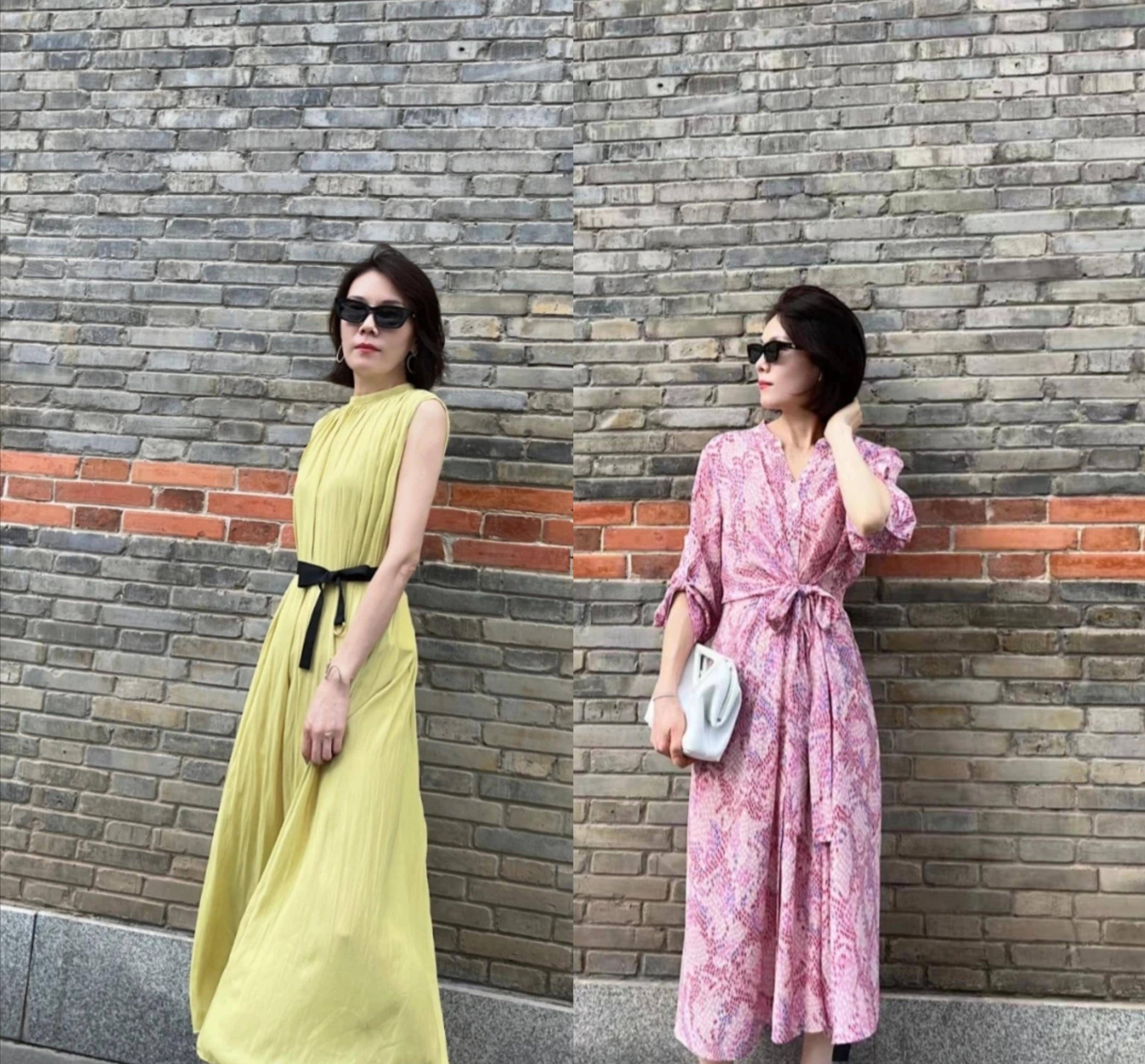 — 这些才是适合中年女性的打扮,裙子过膝、腰带加持,显瘦又有气质 —