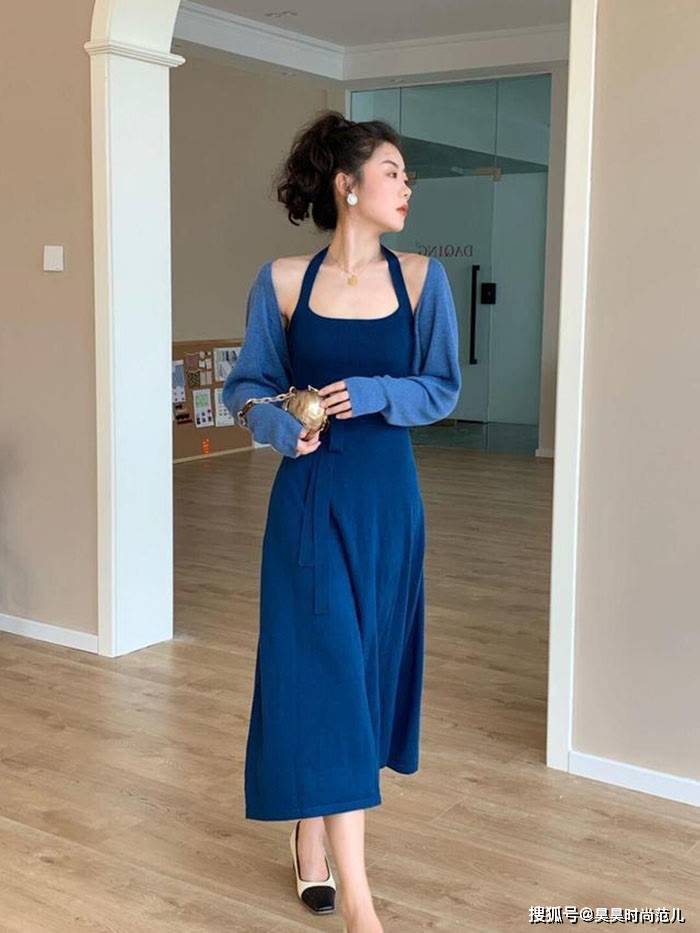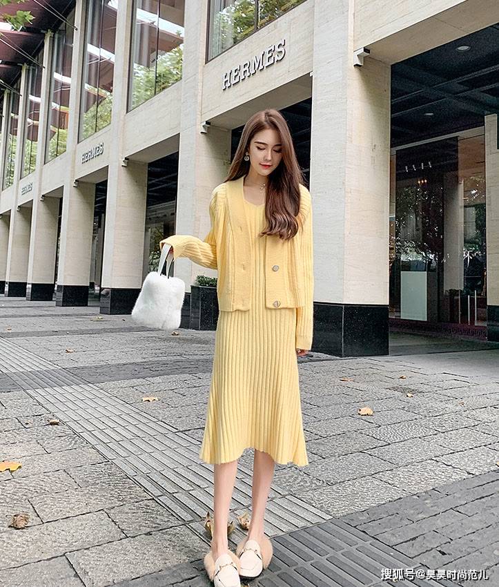 — 秋天穿裙子也可以很美,温柔针织开衫+连衣裙穿搭,优雅又显气质 —